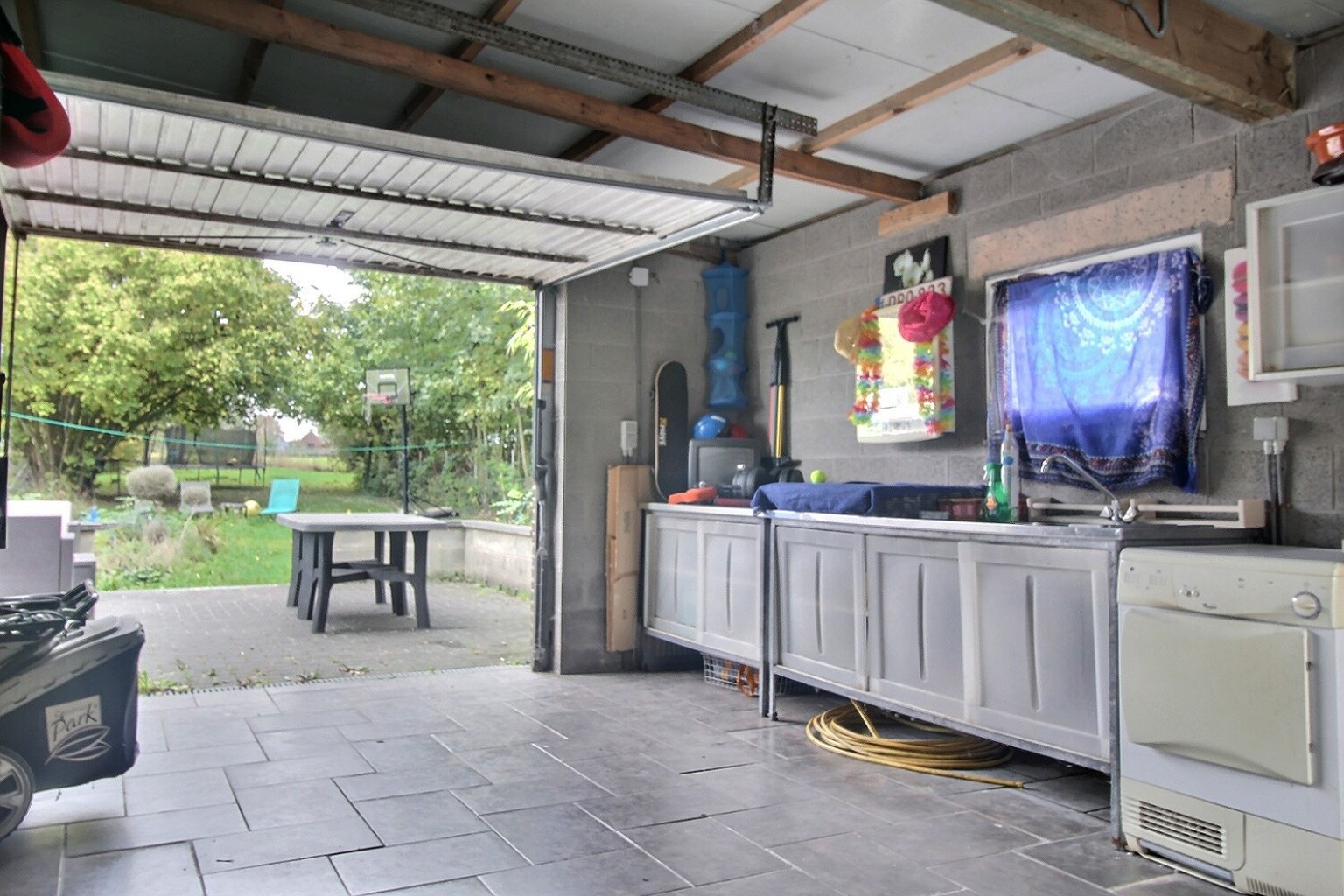 Au sous-sol, une spacieuse cave de rangement. À l’arrière de la maison se trouve également un beau garage, actuellement équipé d’une cuisine semi-équipée. Il peut aussi servir d’atelier ou d’espace indépendant. Celui-ci s’ouvre sur une agréable cour et un beau jardin clôturé.
