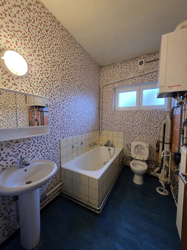 Commodité : parlophone, chauffage central gaz (chaudière Vaillant à condensation), châssis double vitrage pvc, électricité conforme, garage privatif et cave individuelle