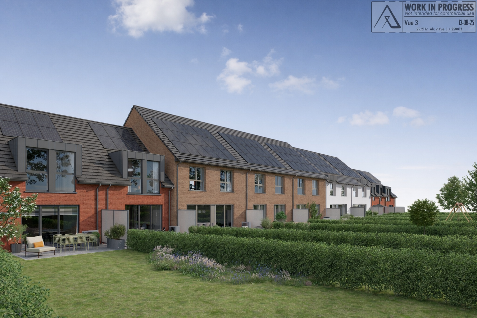 Les habitations offrent une architecture contemporaine avec un agencement intérieur optimalisé, des châssis PVC de qualité supérieure avec double vitrage super isolant, une installation de ventilation double flux avec récupération de chaleur, une pompe à chaleur et des panneaux photovoltaïques. Il est également possible de personnaliser les maisons “à la carte” dans le choix des matériaux selon l’avancement du chantier.